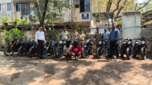 मुंबई, 27 फरवरी 2026: साकीनाका पुलिस स्टेशन की टीम ने मोटर वाहन चोरी के खिलाफ बड़ी कार्रवाई करते हुए दो शातिर चोरों को गिरफ्तार किया है। पुलिस ने आरोपियों के कब्जे से कुल 11 मोटरसाइकिलें बरामद की हैं, जिनकी अनुमानित कीमत 23.89 लाख रुपये बताई जा रही है।