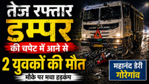 मुंबई के मालाड पूर्व स्थित संजय नगर इलाके से कुर्ला की ओर बाइक से जा रहे दो युवकों की एक भीषण सड़क हादसे में मौत हो गई। यह हादसा महानंदा डेरी के सामने उस समय हुआ, जब तेज रफ्तार डंपर ने उनकी बाइक को टक्कर मार दी।